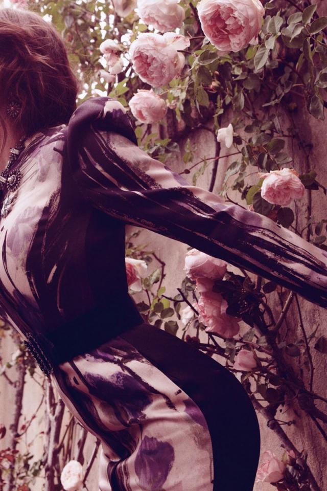 Wallpaper Jessica against the wall with flowers