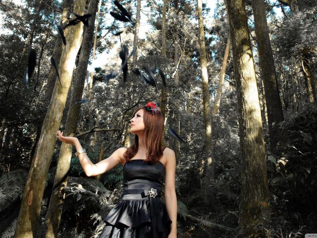 Wallpaper Girl and black feathers