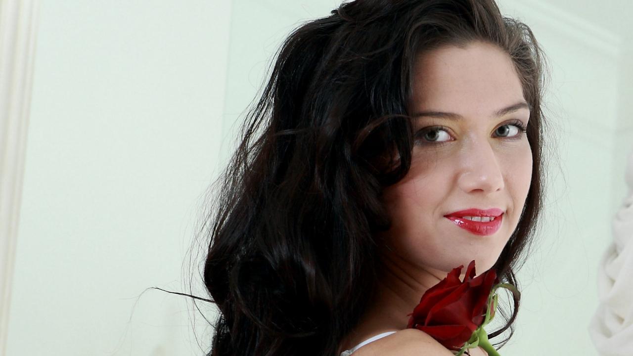 Wallpaper Brunette with rose Zhanna