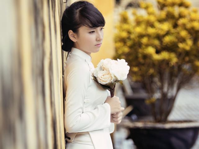 Wallpaper Girl with a bouquet of white roses