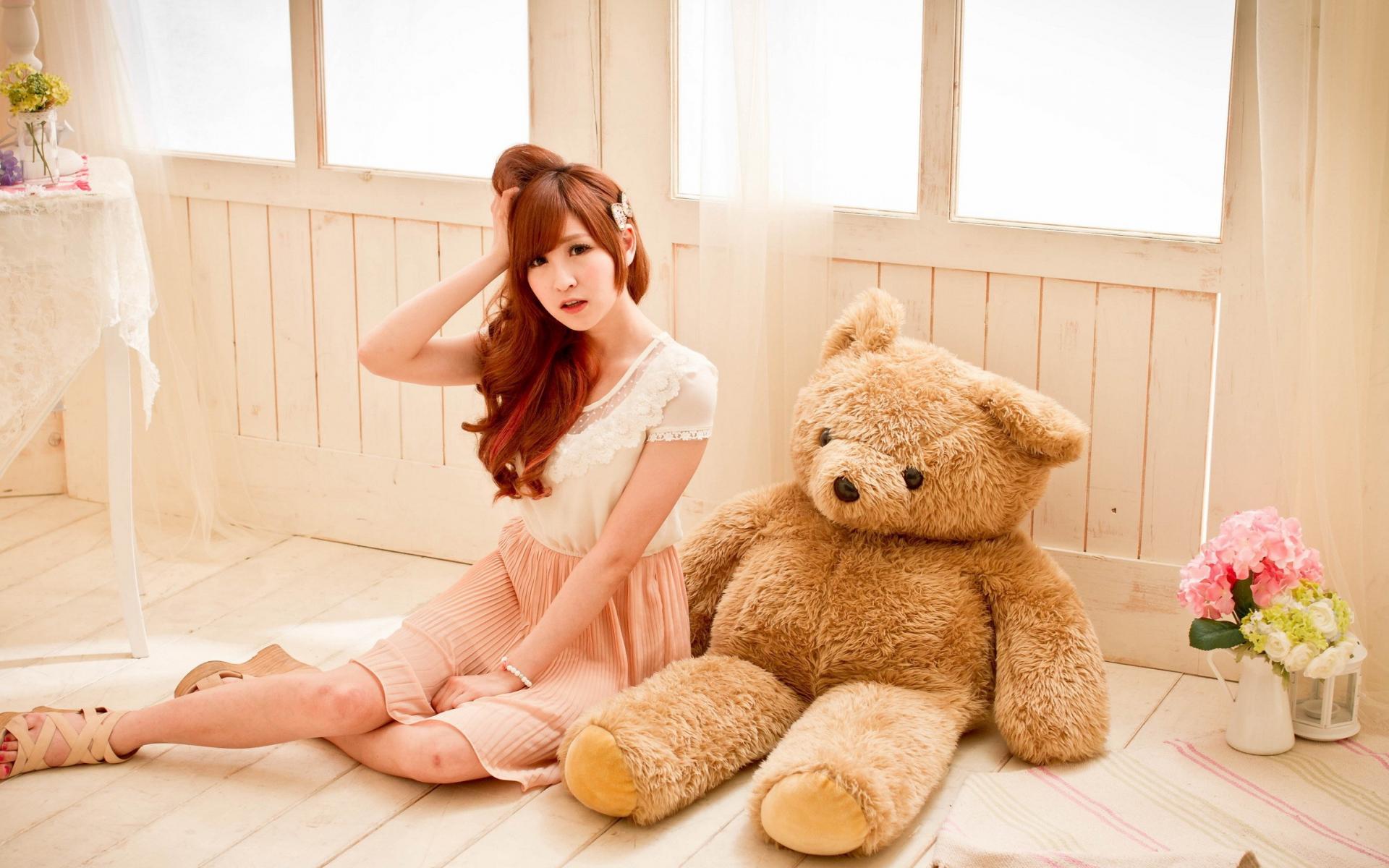Wallpaper Girl with big soft toy