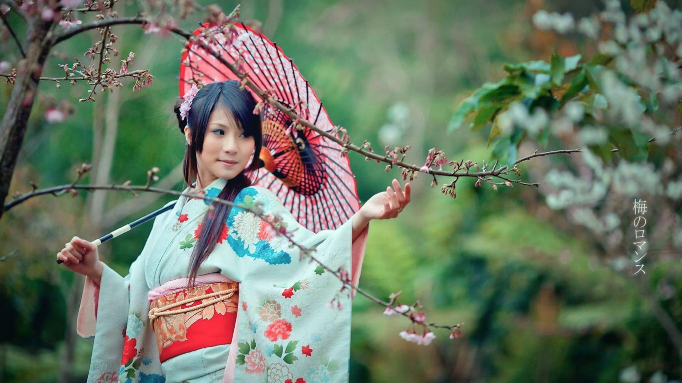 Wallpaper Japanese woman in spring garden