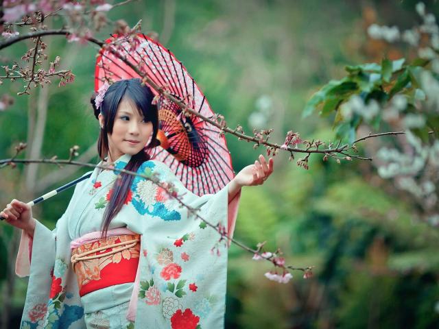 Wallpaper Japanese woman in spring garden