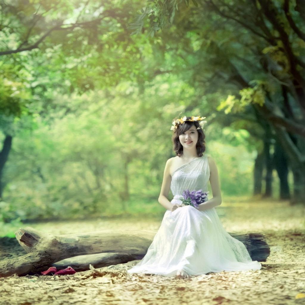 Wallpaper Girl sitting on a log