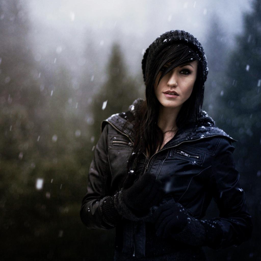 Wallpaper Brunette in a jacket under the snow