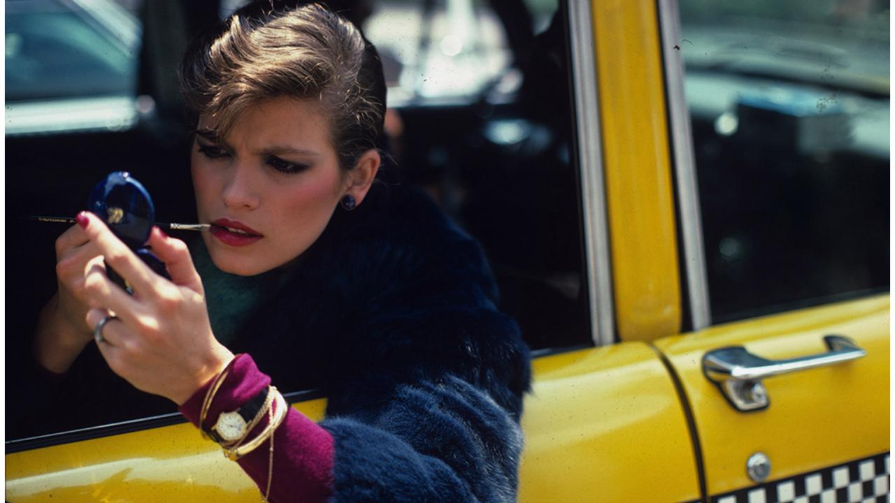 Wallpaper Photo of a girl in a taxi