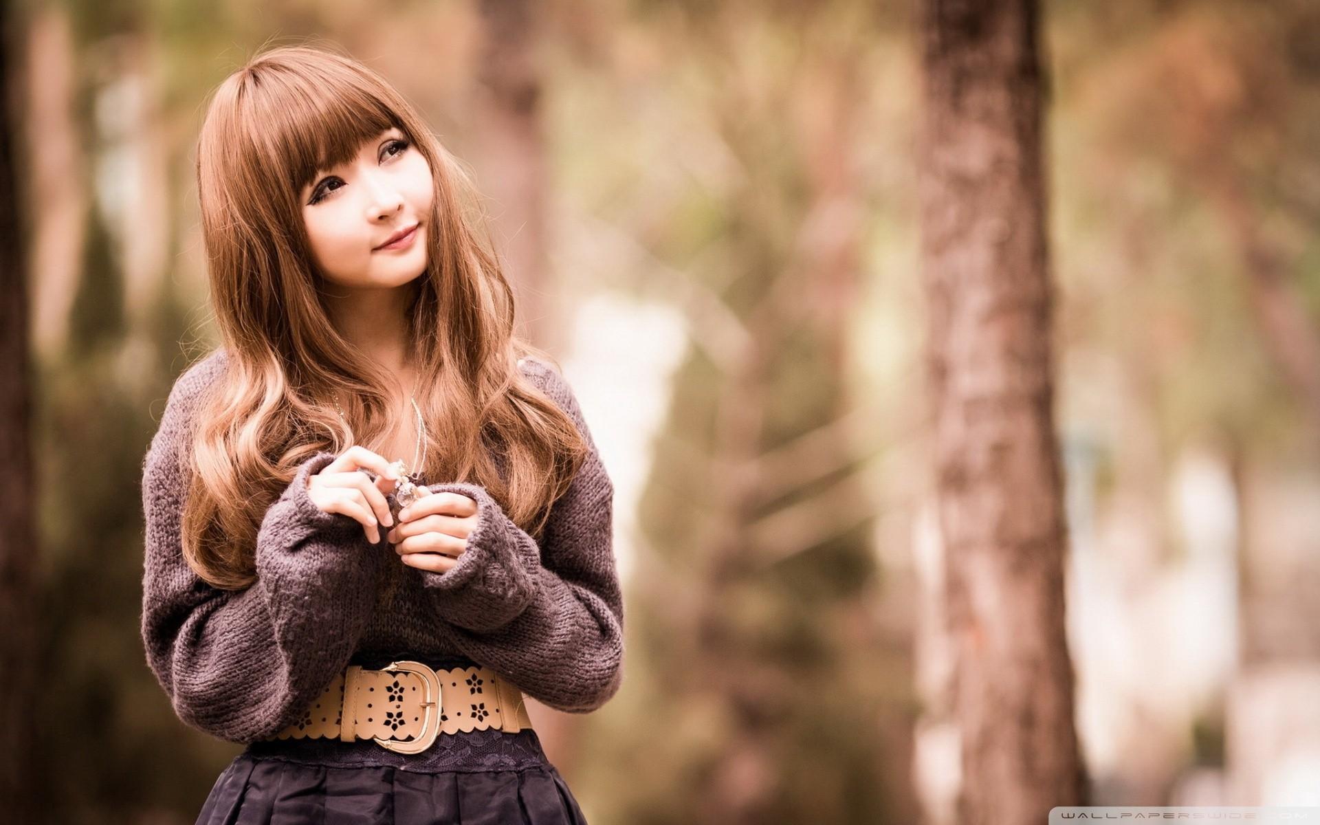Wallpaper Girl in sweater in nature