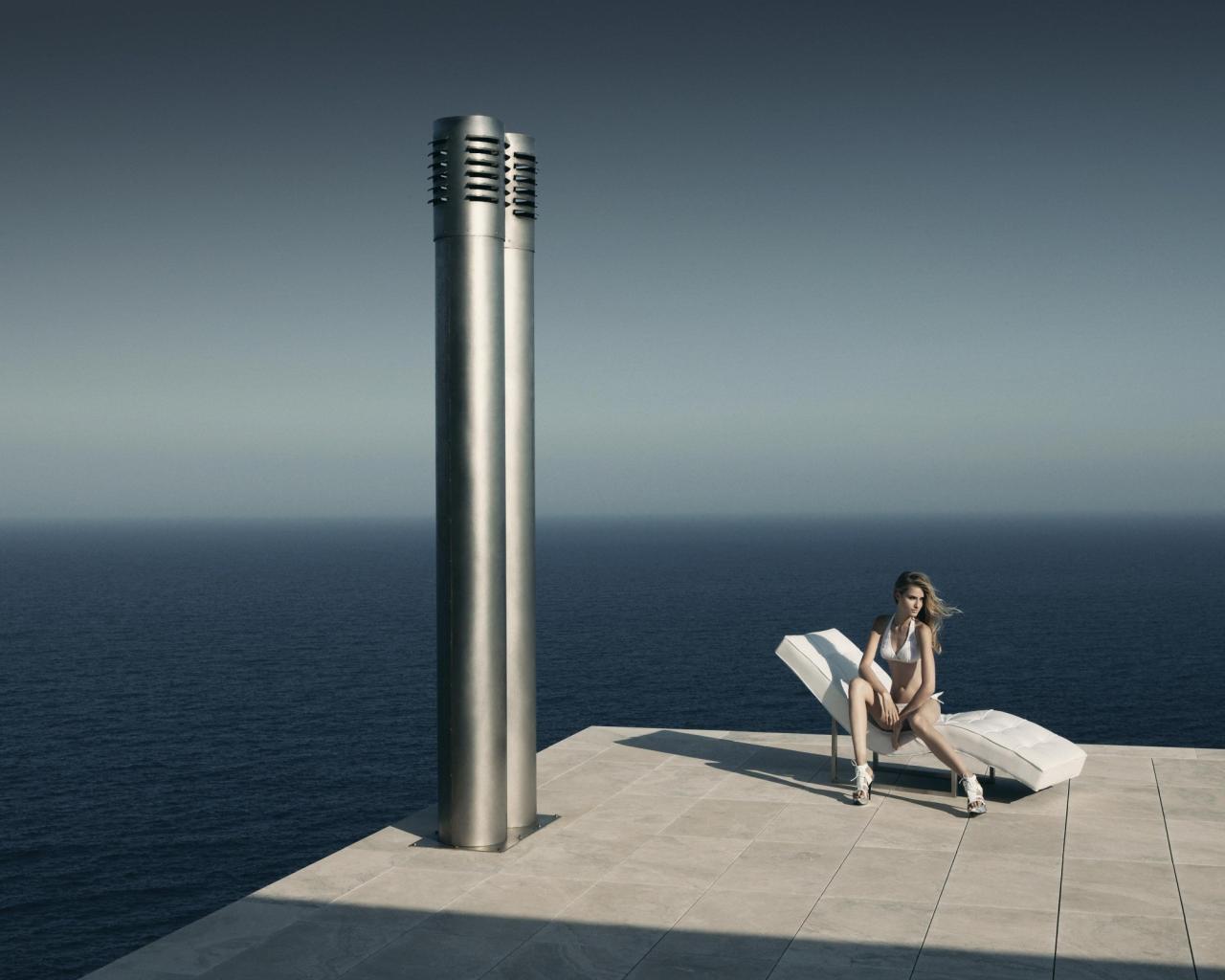 Wallpaper Girl sits near the sea