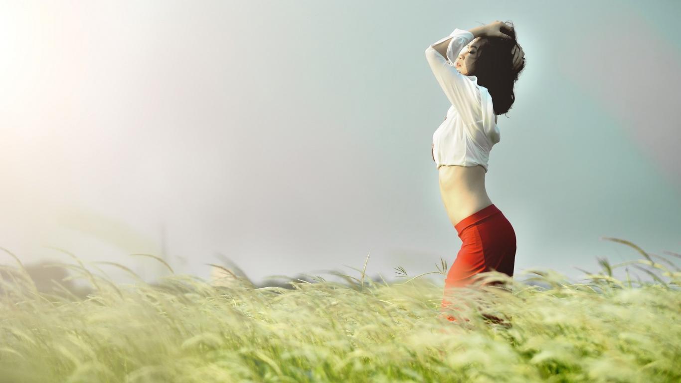 Wallpaper Black hair grass women wallpaper