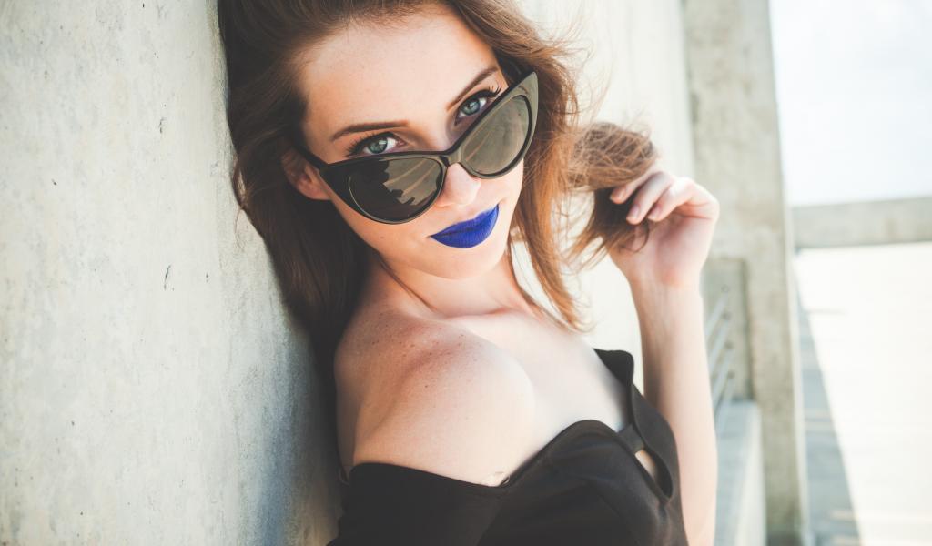 Wallpaper Megan Coffey blue lips brunettes sunglasses women wallpaper
