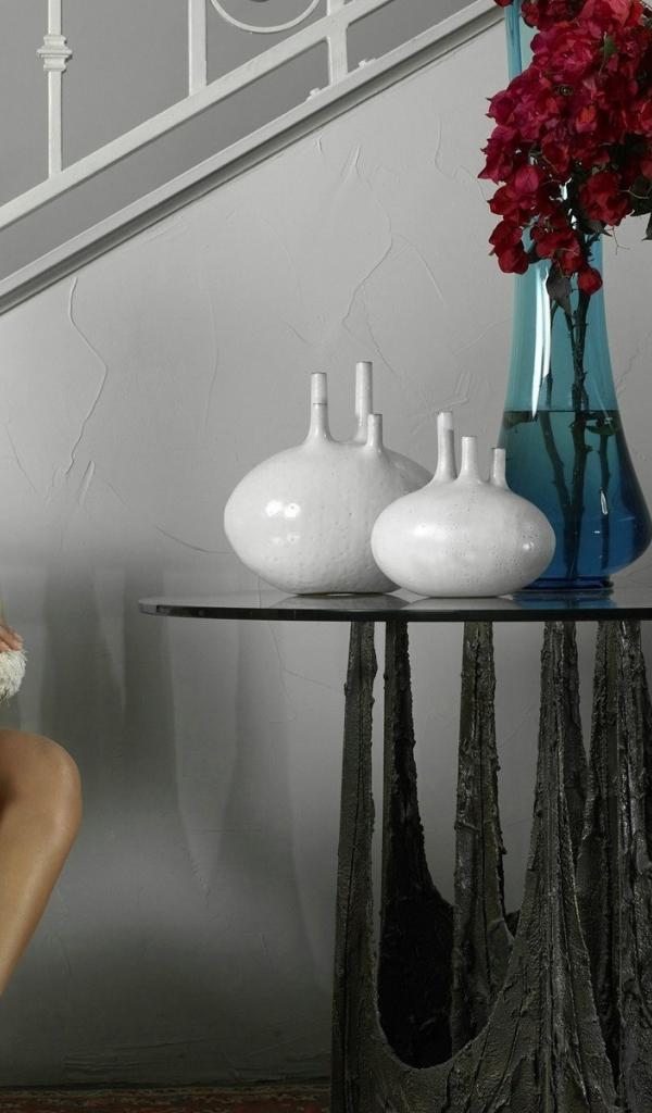 Wallpaper Jessica Alba at the table with flowers