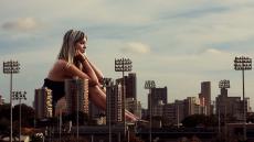 Wallpaper Girl with a handbag, advertising photo