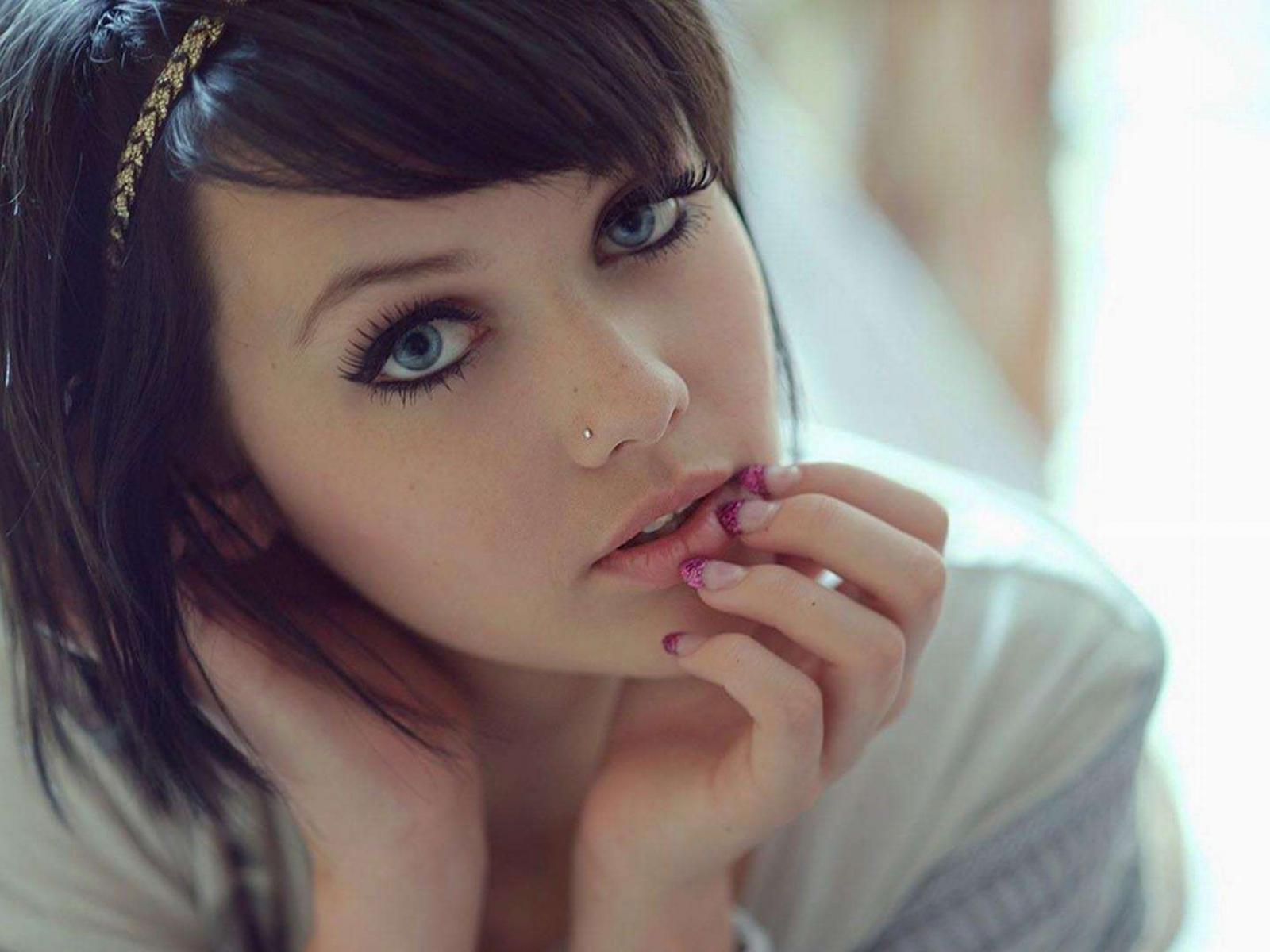 Wallpaper Beautiful young brunette woman with short hair and a pierced nose