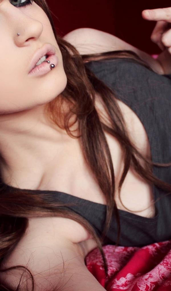Wallpaper Beautiful brown-haired girl with piercing in nose and lip