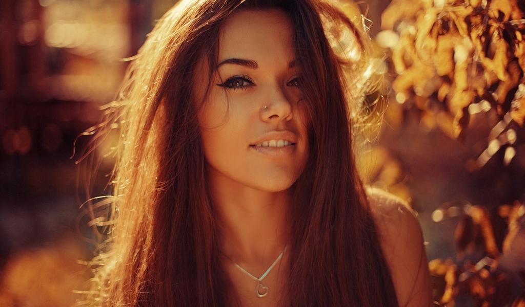 Wallpaper Brown-haired girl with piercing in nose