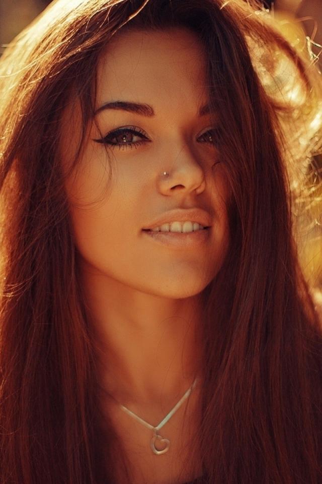 Wallpaper Brown-haired girl with piercing in nose