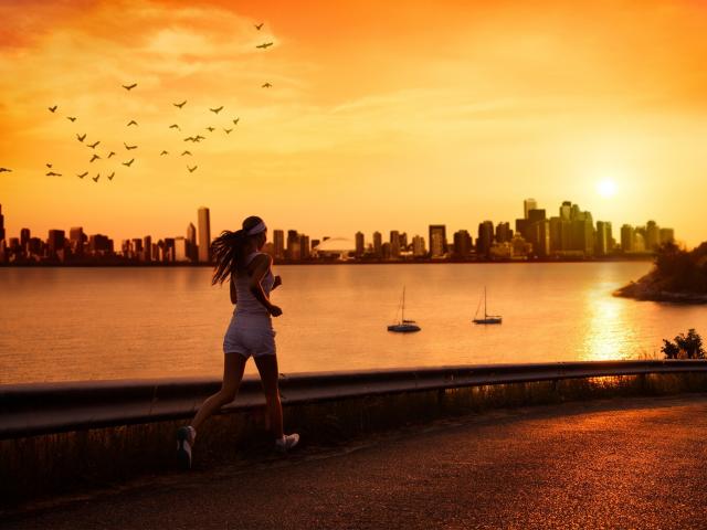 Wallpaper Woman jogging at evening promenade