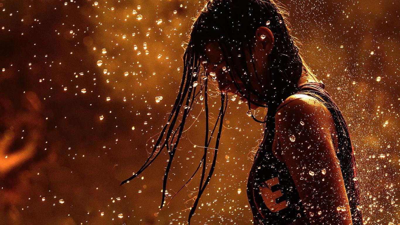 Wallpaper Girl athlete among raindrops