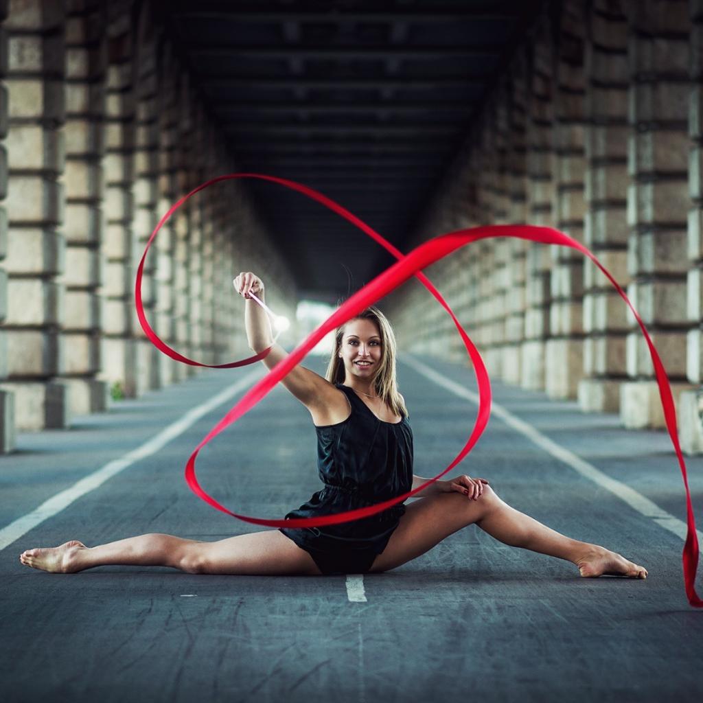 Wallpaper Gymnast exercising with a red ribbon