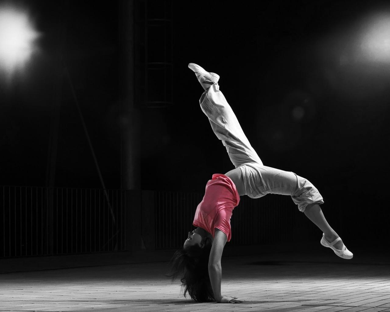 Wallpaper Athletic girl standing on hands