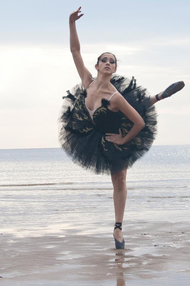 Wallpaper Ballerina in black on the beach