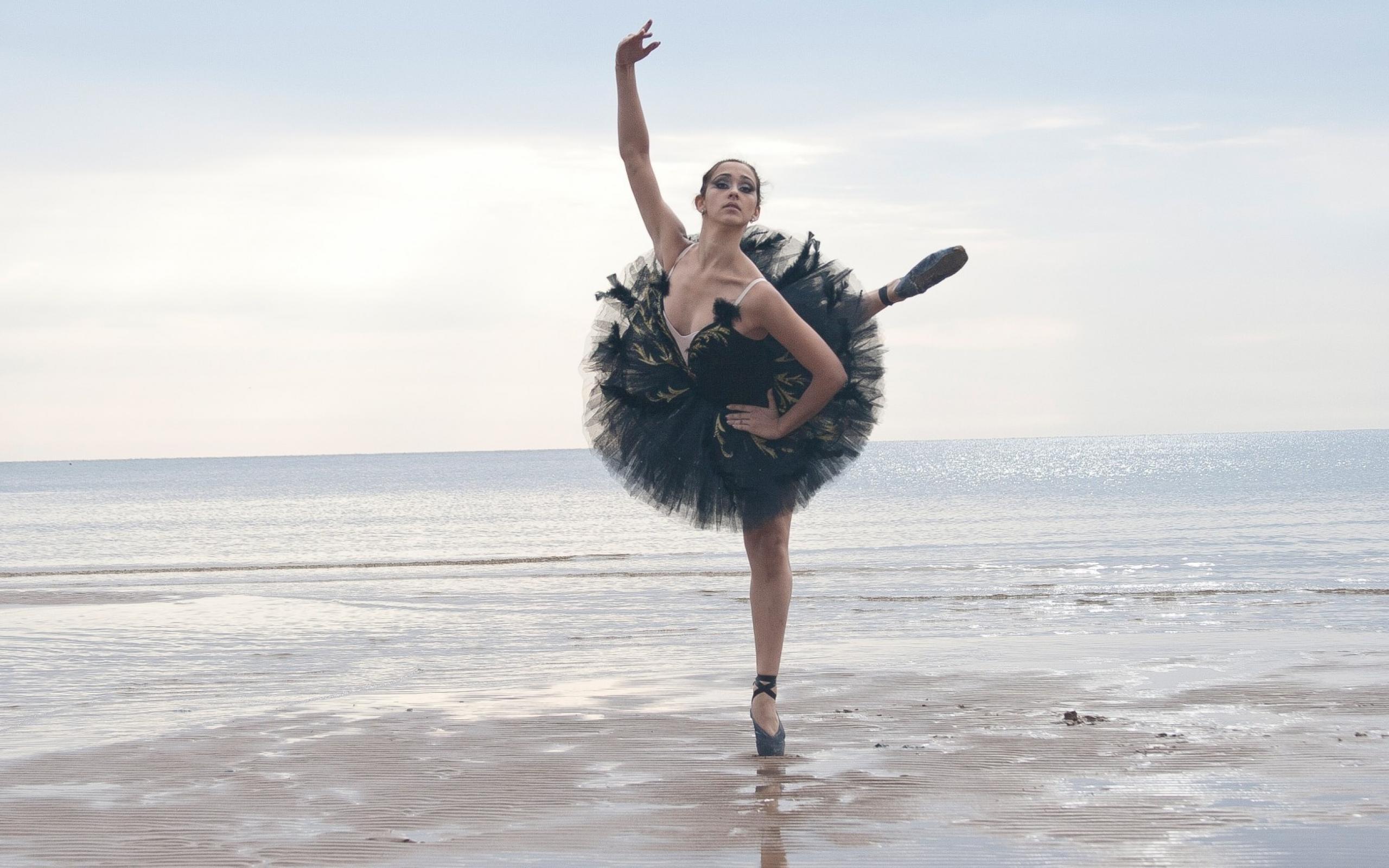 Wallpaper Ballerina in black on the beach