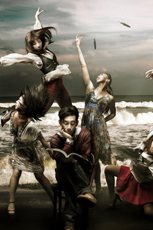 Wallpaper Japanese ballerina on a background of the sea