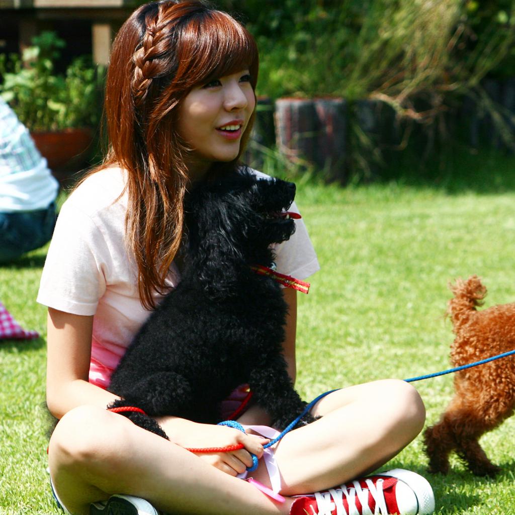 Wallpaper The girl with a dog sitting on the grass