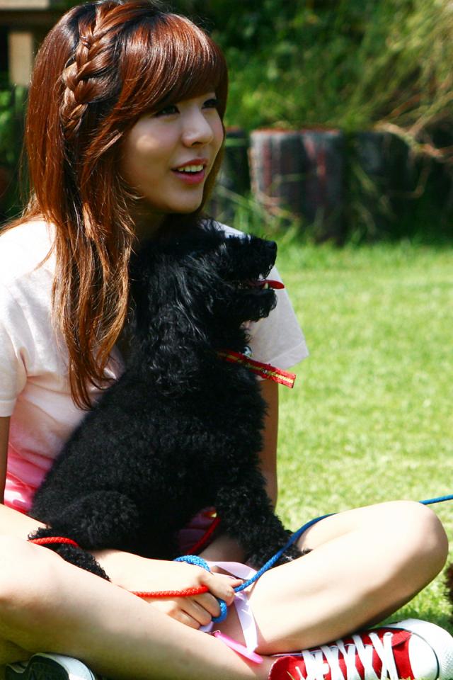 Wallpaper The girl with a dog sitting on the grass