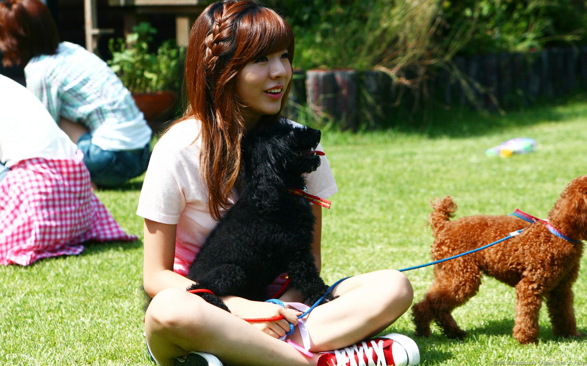Wallpaper The girl with a dog sitting on the grass