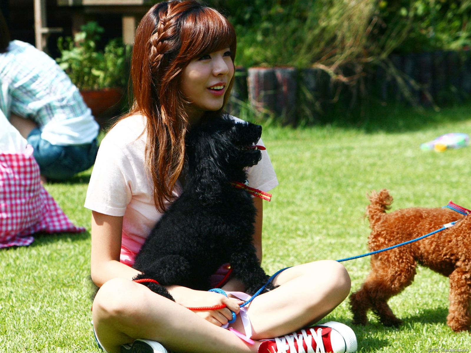 Wallpaper The girl with a dog sitting on the grass