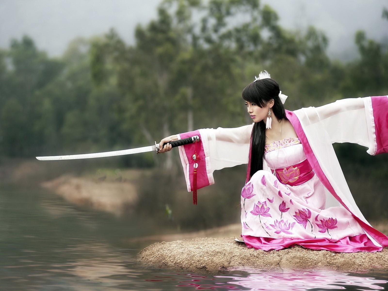 Wallpaper Japanese girl with sword