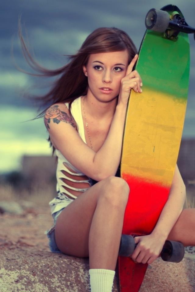 Wallpaper Sporty girl and skateboard