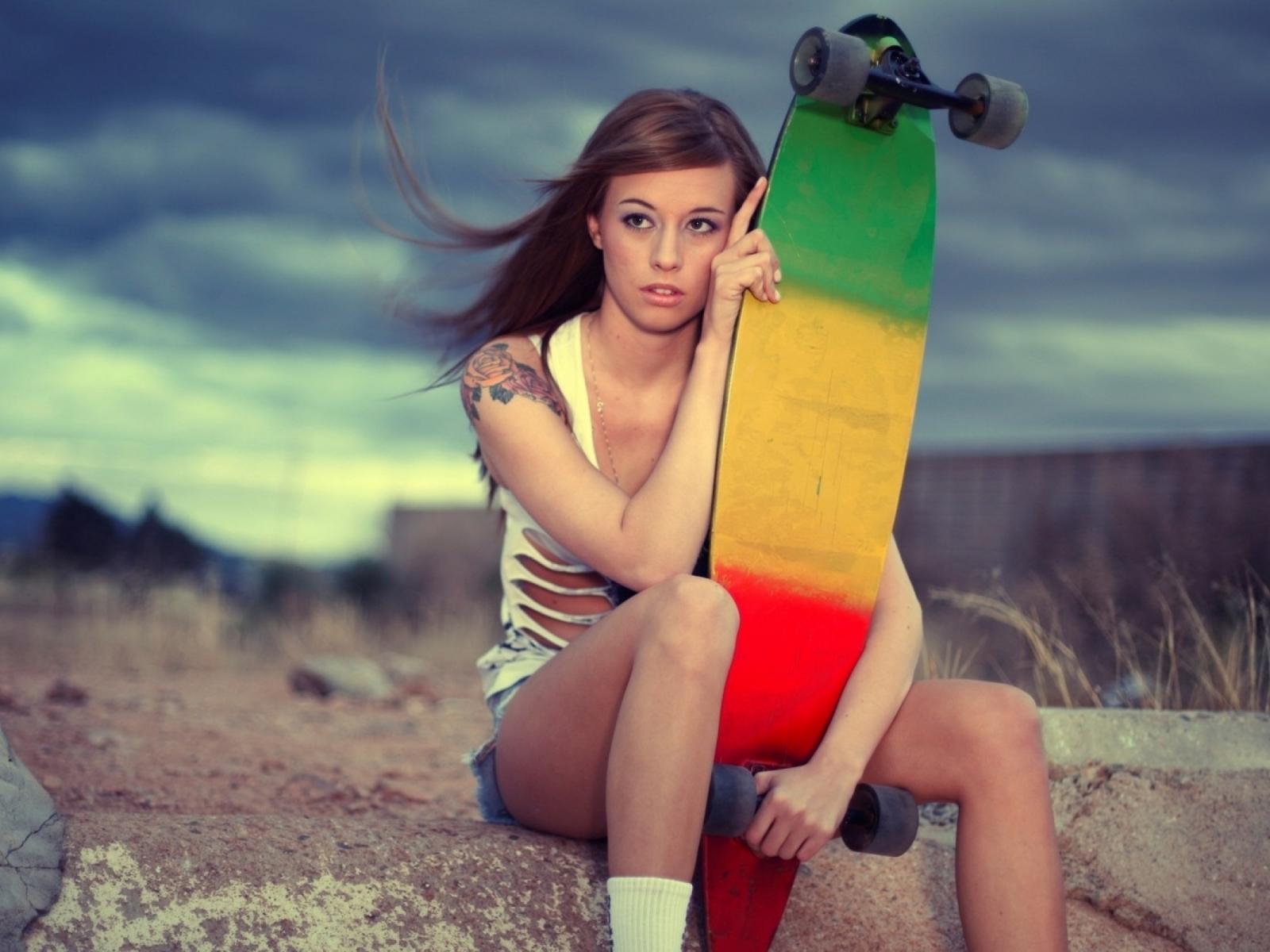 Wallpaper Sporty girl and skateboard