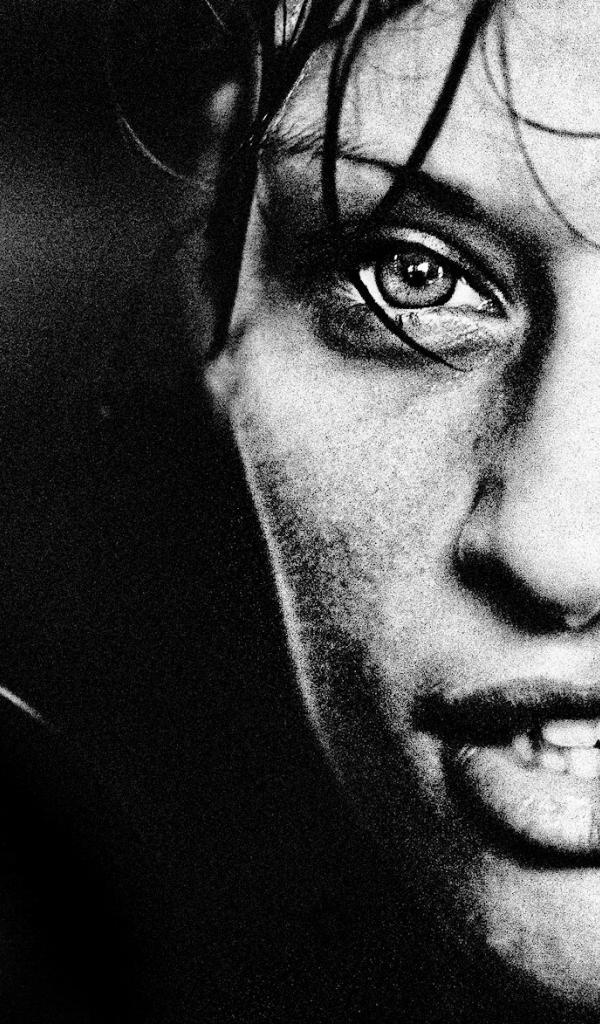 Wallpaper Girl in boxing gloves, black and white photo