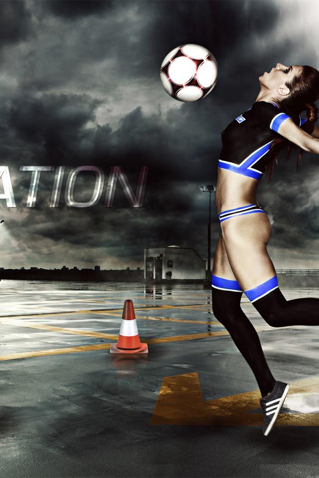 Wallpaper Brunette with a soccer ball
