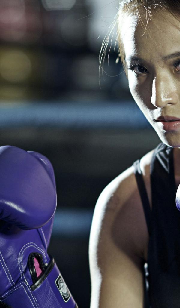 Wallpaper Asian girl in boxing gloves