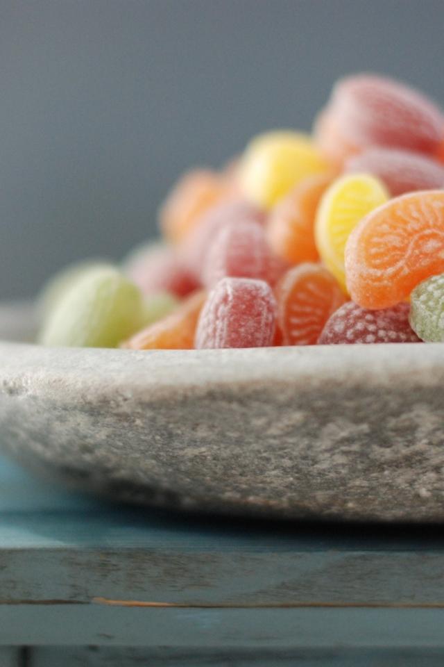 Wallpaper Fruit candies in the stone plate