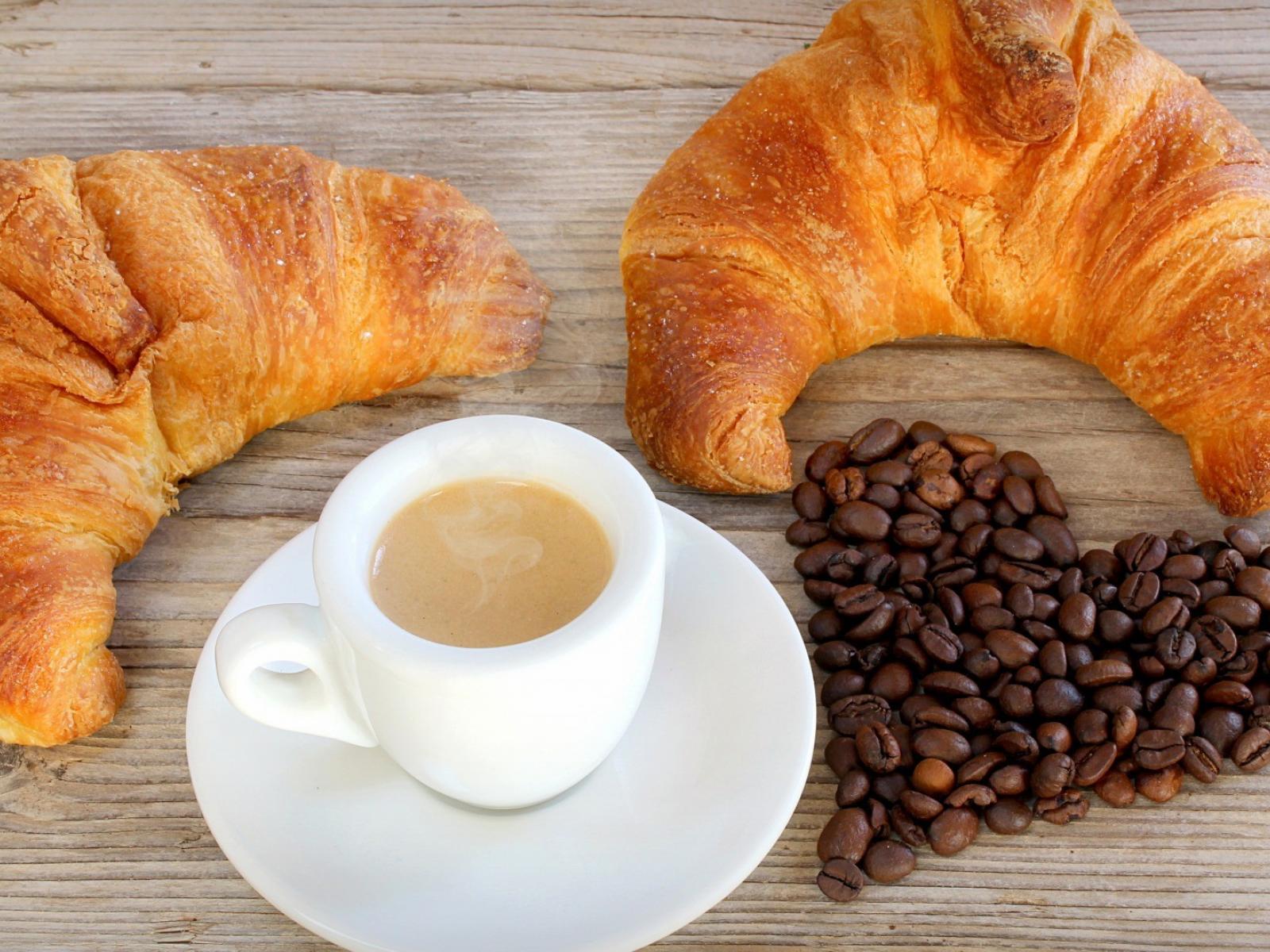 Wallpaper Coffee and croissants with love