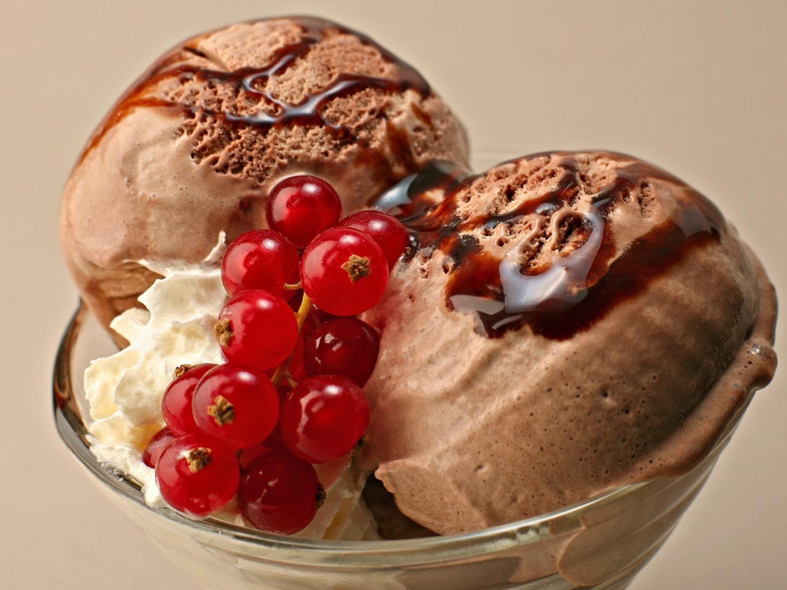 Wallpaper Chocolate ice cream with red currants