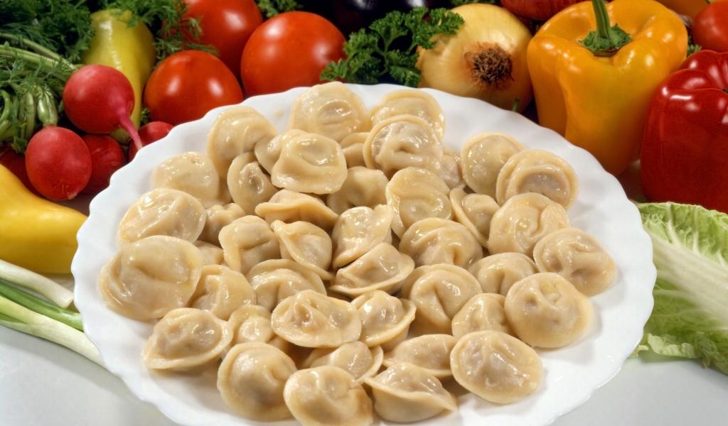 Wallpaper Dumplings on a plate among vegetables