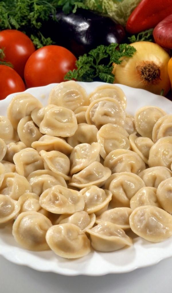 Wallpaper Dumplings on a plate among vegetables