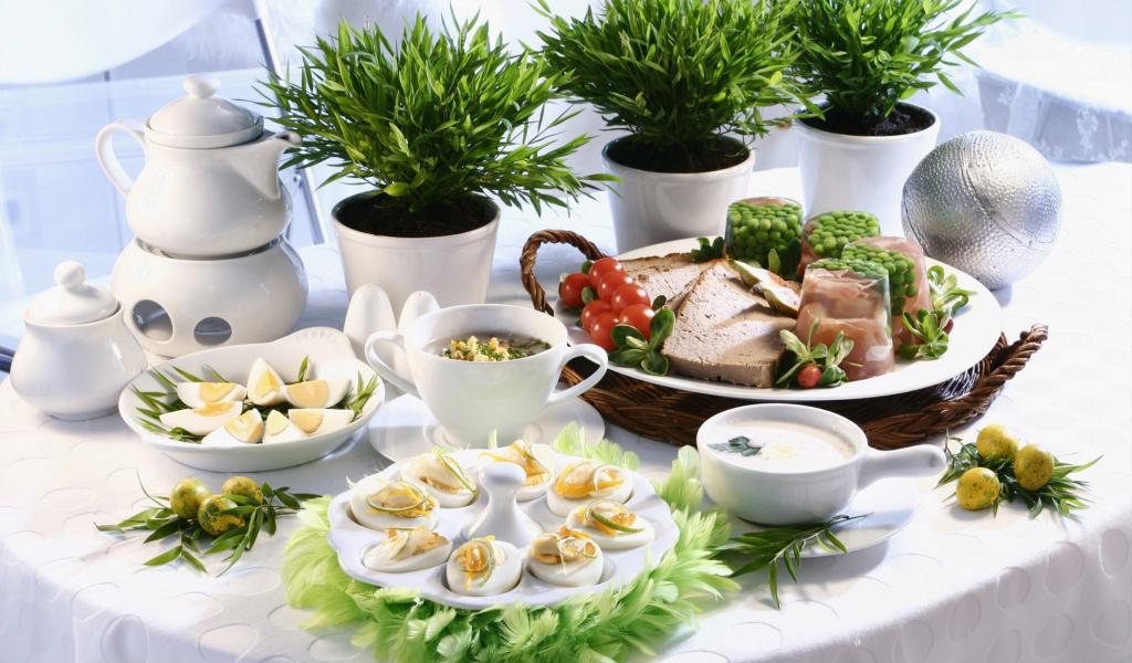 Wallpaper Festive meal of eggs and vegetables
