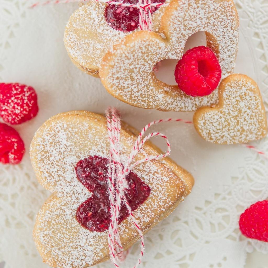 Wallpaper Biscuits with raspberries and powdered sugar