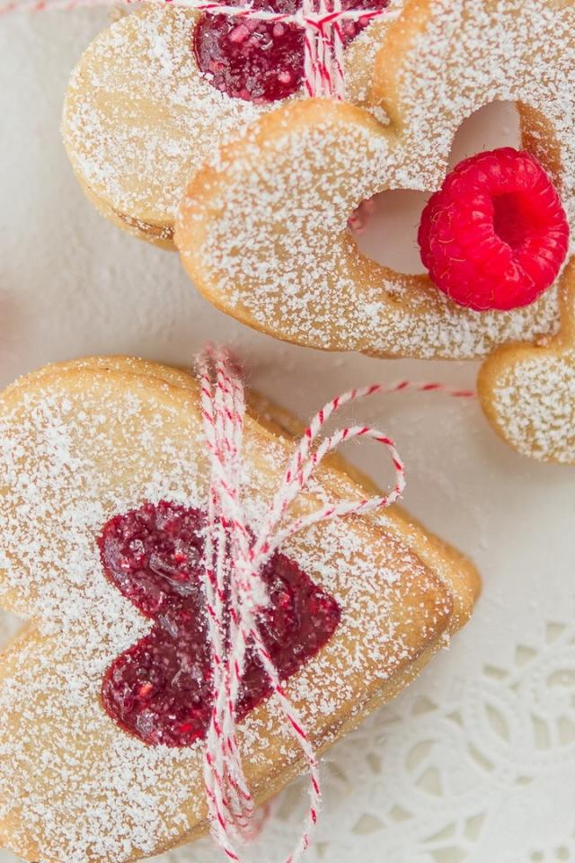 Wallpaper Biscuits with raspberries and powdered sugar