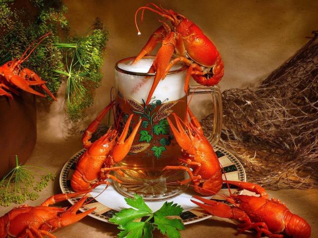 Wallpaper Beer with boiled crawfish