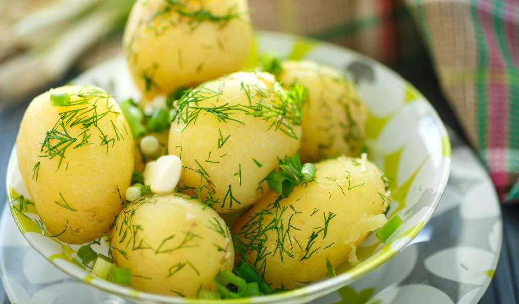 » Wallpaper Young potatoes with herbs