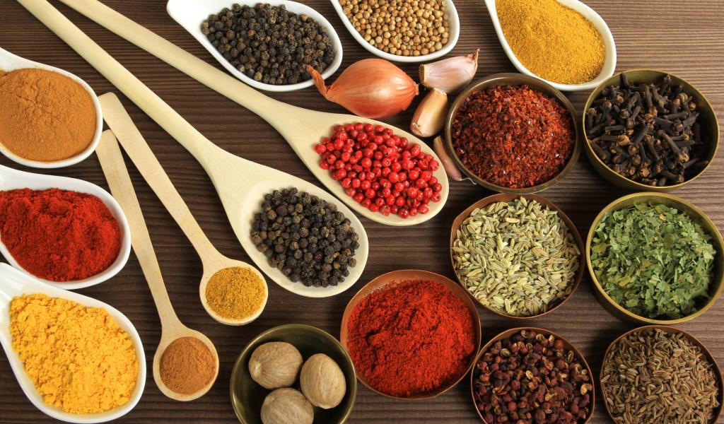 Wallpaper Different spices in the dishes