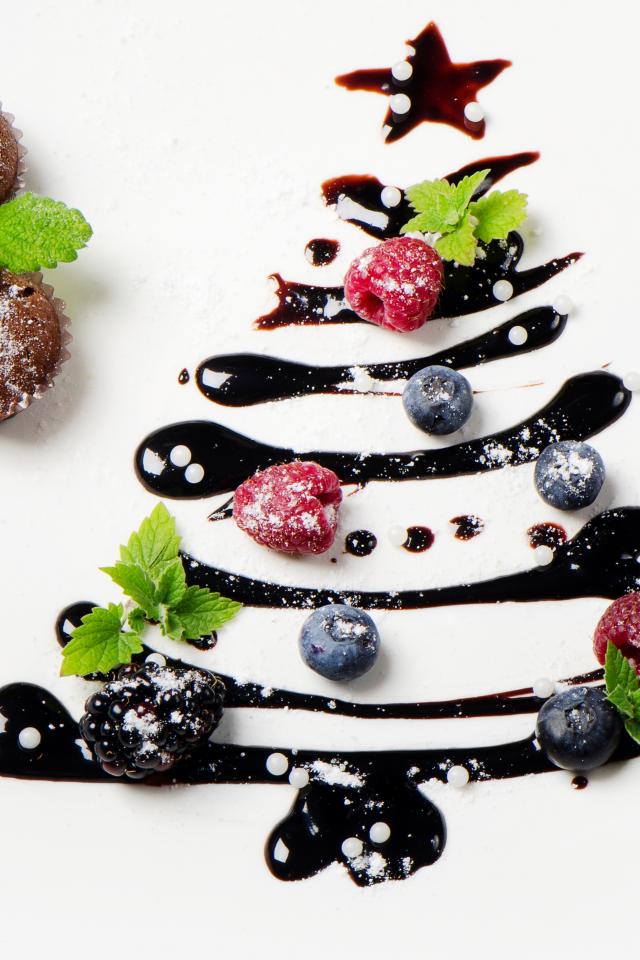 Wallpaper Cupcake, Christmas tree, berry