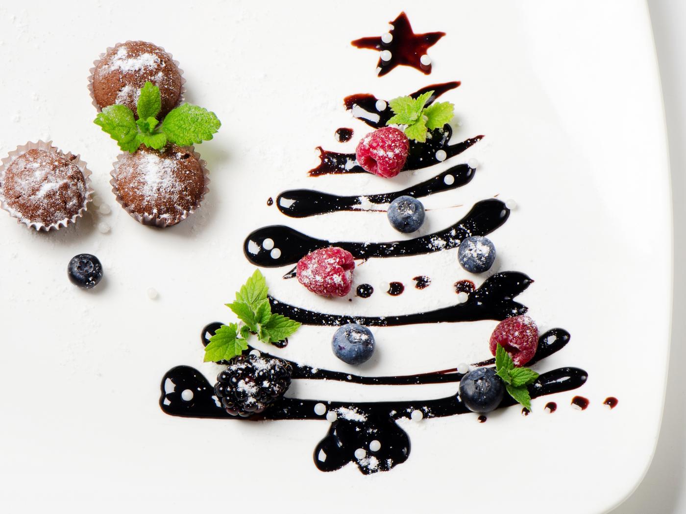 Wallpaper Chocolate cupcake with strawberries on Christmas